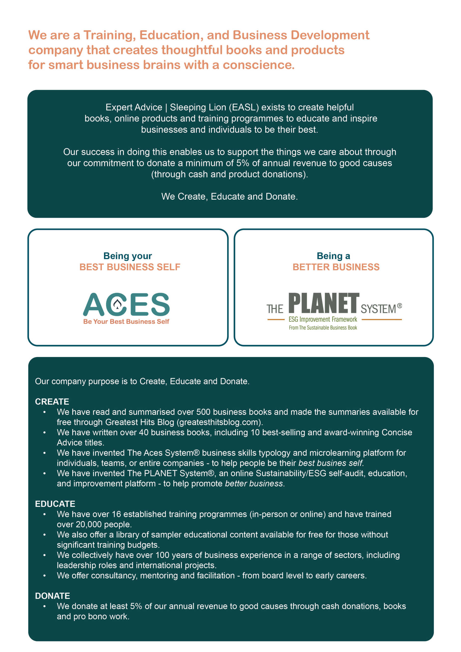 Our new brochure is now available featuring The ACES System®, our revamped Signature Training courses, The PLANET System® Sustainability/ESG products, and our BCorp commitments.